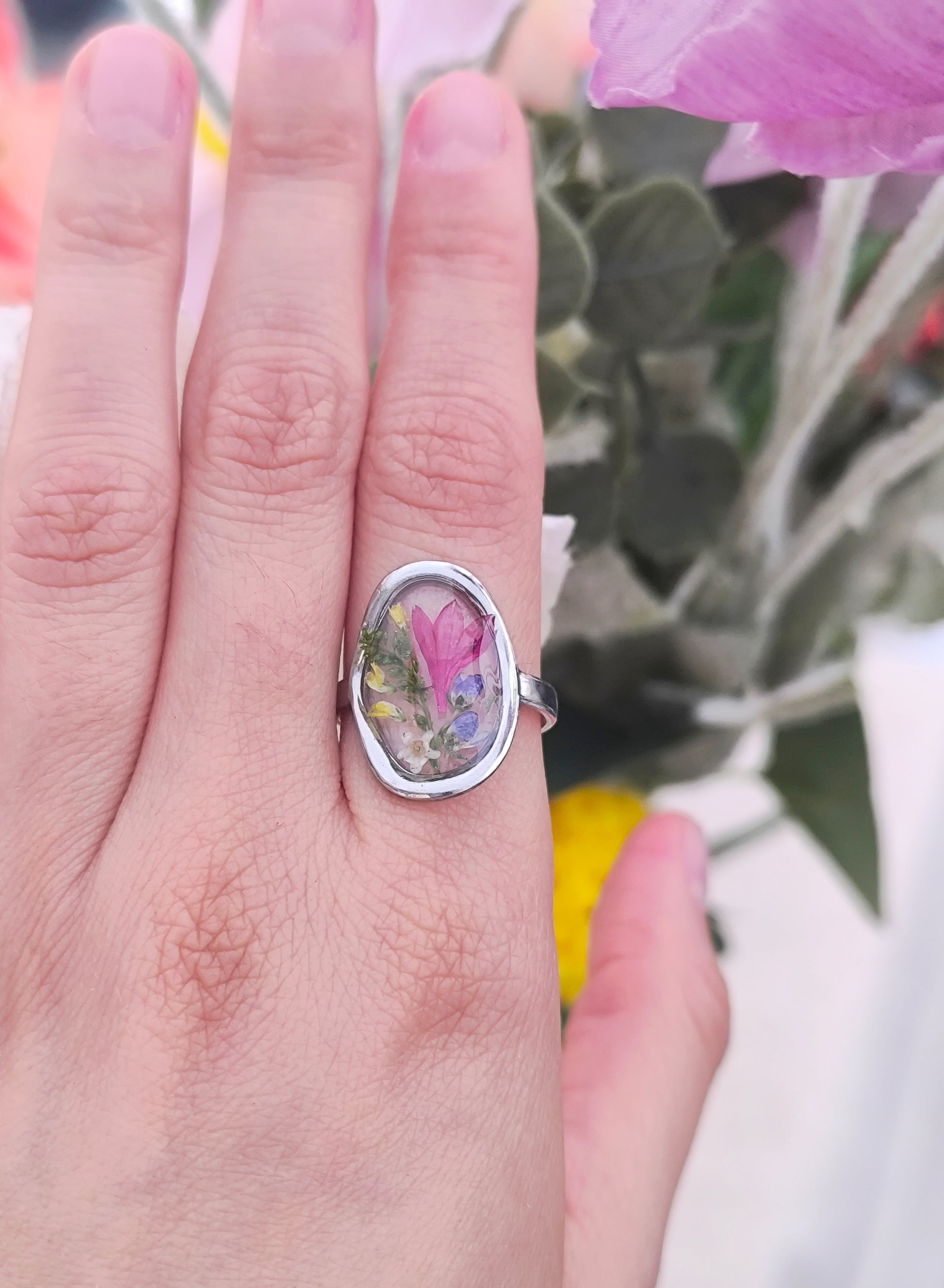 Each item is handmade in a one-of-a-kind design with high-quality UV resin that avoids yellowing. Flowers were pressed for about two weeks to remove moisture, and some have been tinted to preserve color.
