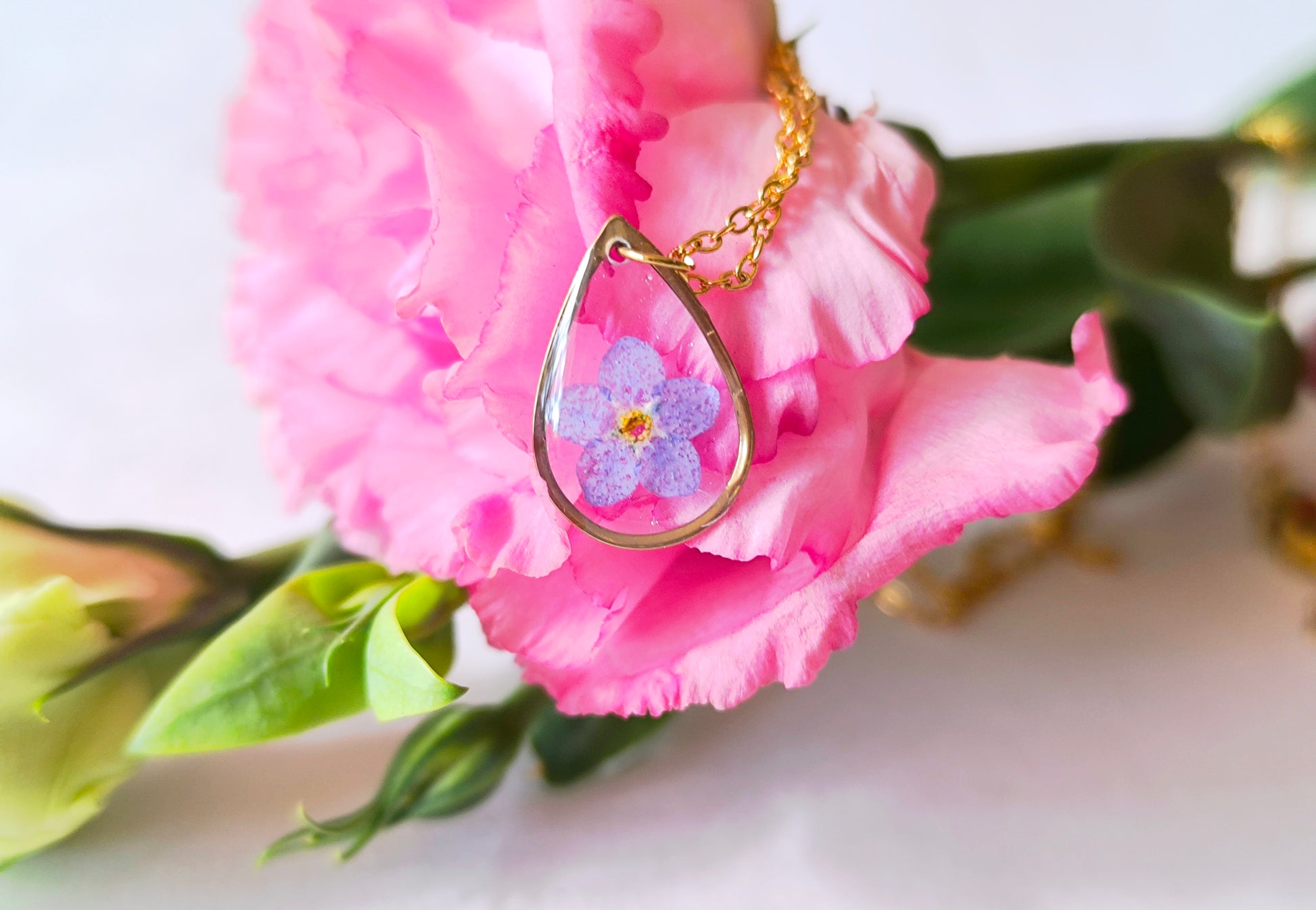 Each item is handmade in a one-of-a-kind design with high quality UV resin that avoids yellowing. Flowers were pressed for about two weeks to remove moisture and some have been tinted to preserve color.