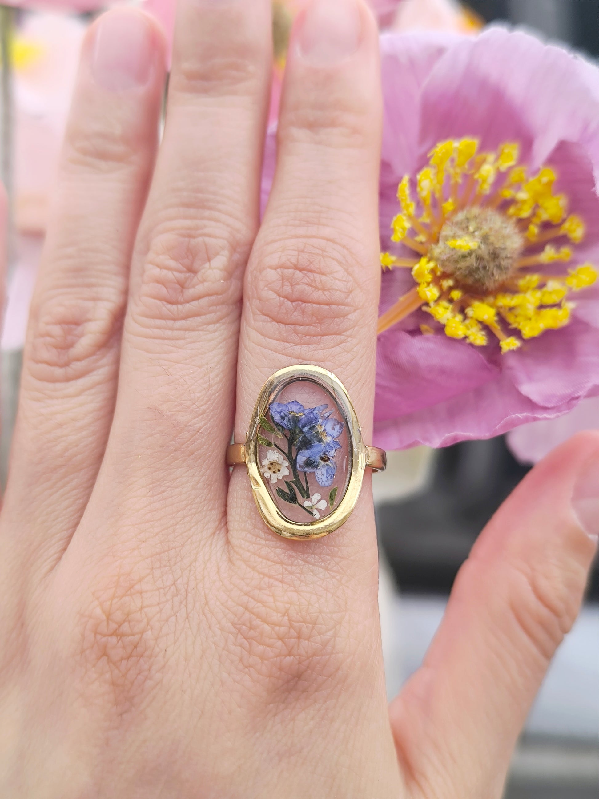 Each item is handmade in a one-of-a-kind design with high-quality UV resin that avoids yellowing. Flowers were pressed for about two weeks to remove moisture, and some have been tinted to preserve color.